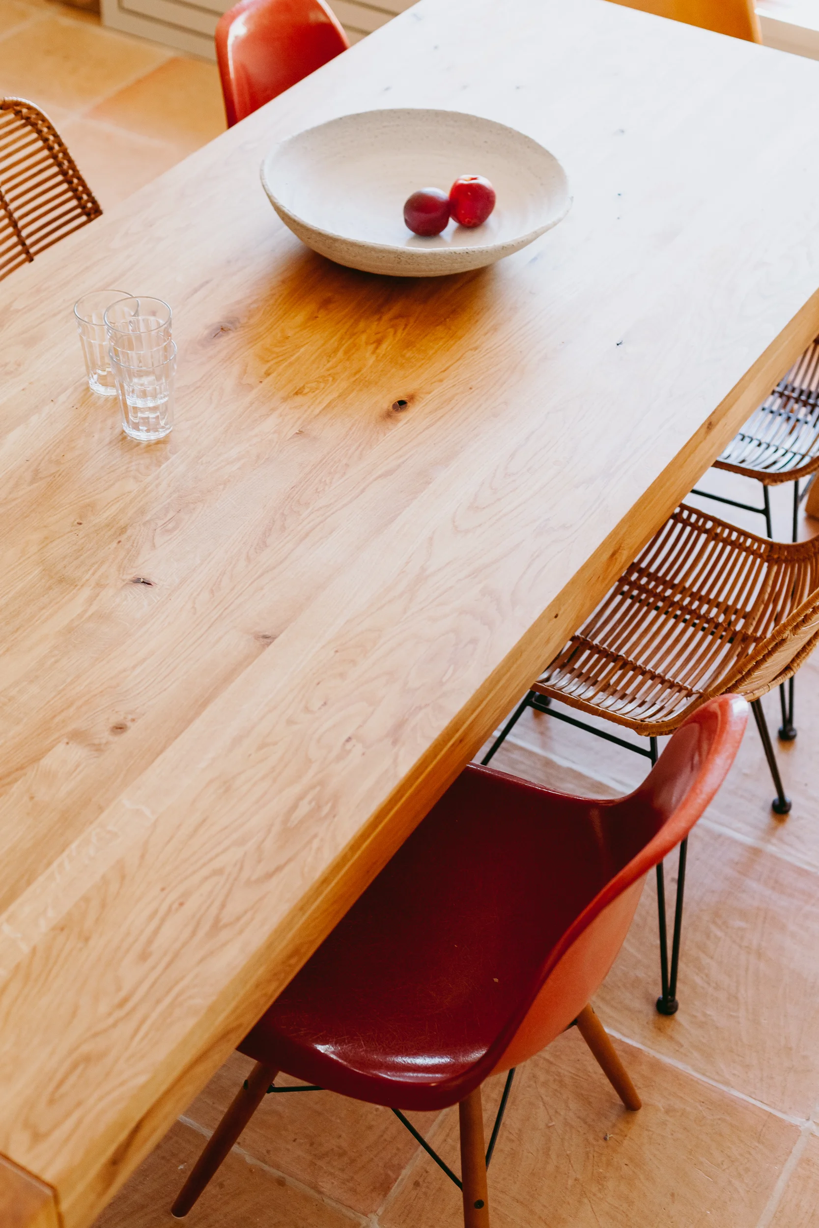 - Großer Holztisch als Herzstück mit acht Stühlen